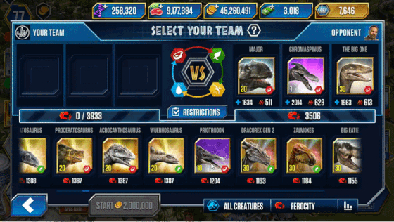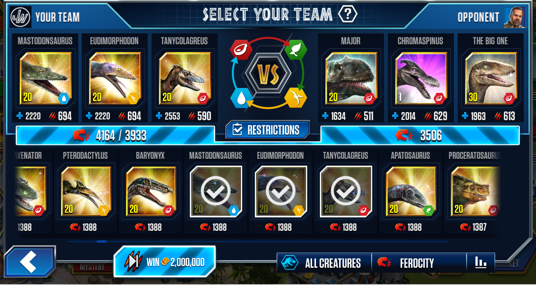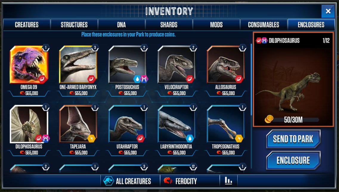 • You can also filter by ferocity within the: